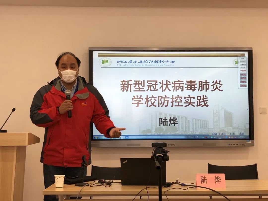 讲座邀请到浙江省疾病预防控制中心传染病防治所所长助理陆烨主讲。陆烨就新型冠状病毒感染肺炎疫情介绍、防控知识普及、师生日常健康监测流程、消毒基础知识、正确使用口罩等内容展开细致讲述,并就高校疫情防控措施进行了全面的讲解。讲座结束,现场参会人员还就食堂工作人员防疫要求、教室寝室消毒、学生回校若有发烧如何应急处置等具体措施作了更细致咨询。本次讲座让参会人员进一步明确了开学前新冠疫情防控内容,强化了对疫情防控形势严峻性、复杂性、艰巨性的认识,为学校开学打好基础,把牢防疫安全第一关。