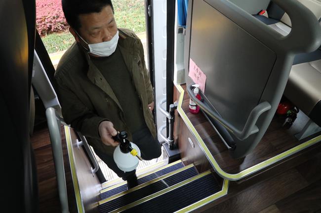 注重提高班车、校车、业务用车驾驶员的安全防范意识,校医务室已对驾驶员们进行健康知识培训。每天早、晚进行车厢消毒,开窗通风,每天详细记录乘车人数,并对乘车人员进行体温检查,全面保障师生交通安全。复学后,为确保交通安全,为乘坐公共交通工具返校的学生提供接站服务。
