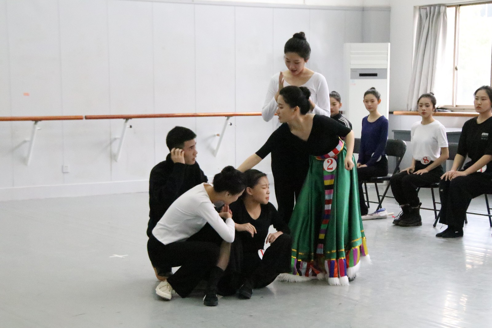 本次考试总共设置12个考场,针对不同专业的考生进行考试。舞蹈类考试中,主要考劈叉、前腿、下腰、弹跳、扳腿等基本功动作、个人技巧展示、舞蹈剧目展示和即兴创作表演。个人技巧展示包含跳、转、翻三方面技巧。舞蹈剧目展示中,考生们根据事先准备的伴奏、穿上演出服现场表演。有表演藏族舞、傣族舞等,还有考生扮演济公形象进行剧目展示。表演惟妙惟肖,生动又有感染力。即兴舞蹈创作表演环节中,考生们根据现场播放的音乐进行编舞,每位考生对音乐理解的不同,呈现出的舞蹈意境也有所不同。