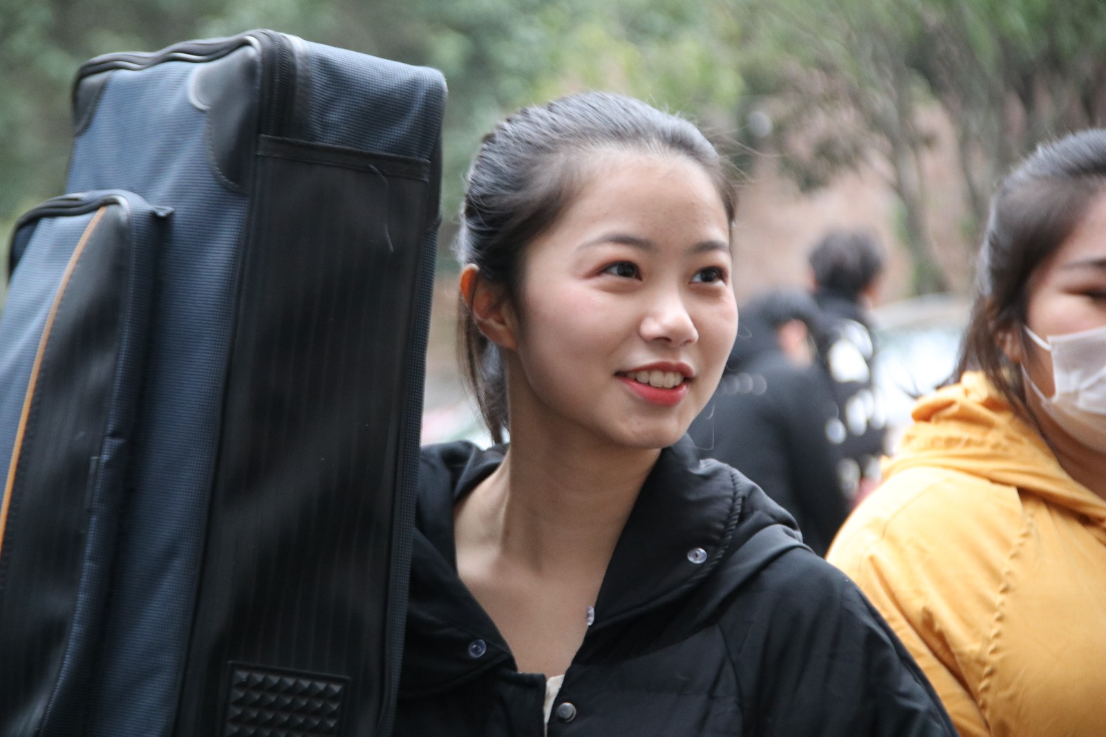 正值疫情期间,家长和带队老师不得进校,为了考试有序进行,学校师生和志愿者为考生提供热情的服务,让考生全身心投入到考试当中。考生们一大早来到考点等候。在音乐系门口排队等候的一位来自诸暨的女生,学古筝有两三年了,面对众多竞争对手,她说,最重要的是心态好,发挥出自己的真实水平。话刚说完,志愿者上前帮她把古筝抬进候考室。
