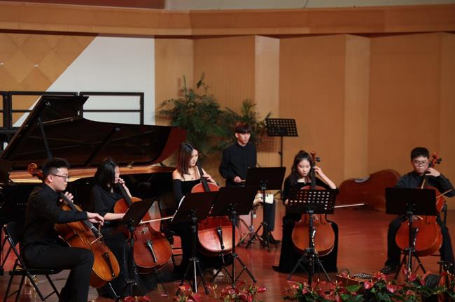 伴随着长笛二重奏《回旋曲》、小古典吉他独奏《西班牙舞曲第四号》、大提琴重奏《加勒比海盗组曲》等多首乐器独奏重奏曲相继登场,场内的听众们已完全沉浸其中。