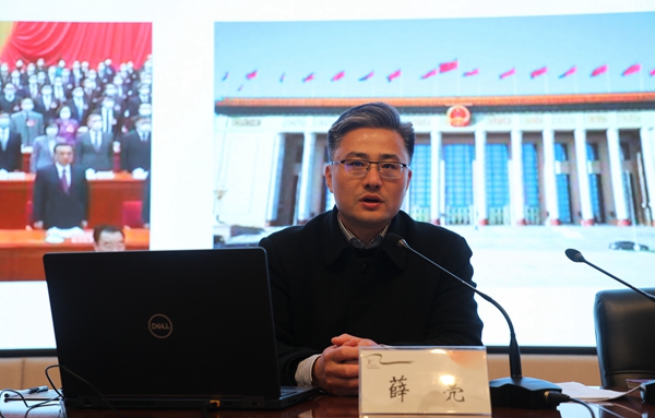 会上,党委书记薛亮传达2021年全国两会基本情况,对学校贯彻落实两会精神提出明确要求。他表示,今年全国两会是在“两个百年”交汇的重要历史节点召开的两会,是在我们党迎来建党100周年的历史时刻召开的两会,是在“十四五”规划开局之年和全面建设社会主义现代化国家新征程起步之年召开的一次十分重要的会议。会议坚持以习近平新时代中国特色社会主义思想为指导,审议决定了一系列重大事项,取得了一系列丰硕成果习近平总书记在全国两会期间参加内蒙古代表团审议、青海代表团审议解放军和武警部队代表团全体会议和看望参加政协会议的医药卫生界教育界委员的重要讲话精神,对于进一步统一思想、坚定信心、凝聚力量,扎实做好当前和今后一个时期各项工作提供了根本遵循。
