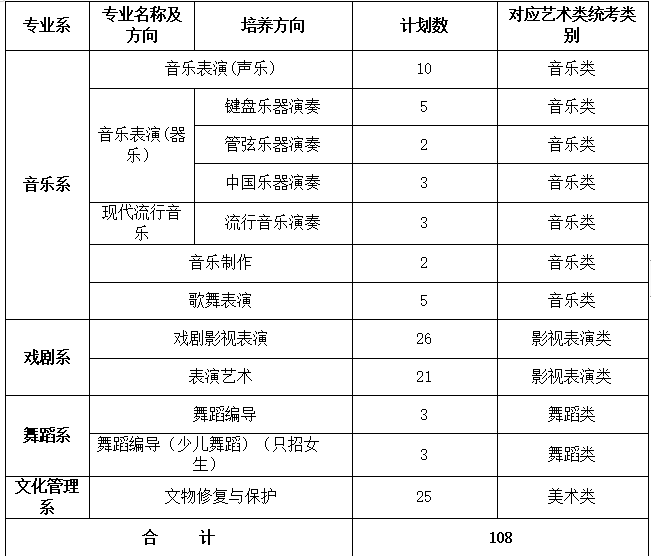 (一)面向普高招生考生108名