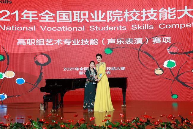 今年是全国职业院校技能大赛高职组艺术专业技能(声乐表演)赛项比赛规程改革的第一年,采取了规定曲目演唱、专业知识测试等新比赛方式,重点考核参赛选手的专业应用能力和专业理论修养。在前期备赛过程中,音乐系声乐、歌舞、音乐剧、理论、器乐等教研室通力合作,从赛制剖析到重点把握,为参赛选手“量身定制”了一整套备赛方案,在系主任、党总支书记吴樟华的带领下,系班子全体成员、综办全体成员、理论教研室主任张星、视唱练耳教师冯敏娜、艺术指导熊壮壮等优秀教师纷纷加入赛前训练队伍,与指导教师章蔓丽一起携力做好各阶段备赛工作。可以说,赛场上谢怡婷同学的出色表现,是音乐系各学科综合教学能力的集中体现,更是我校作为全国唯一入选国家职业教育“双高”建设的综合艺术类院校的优秀教学成果展示。