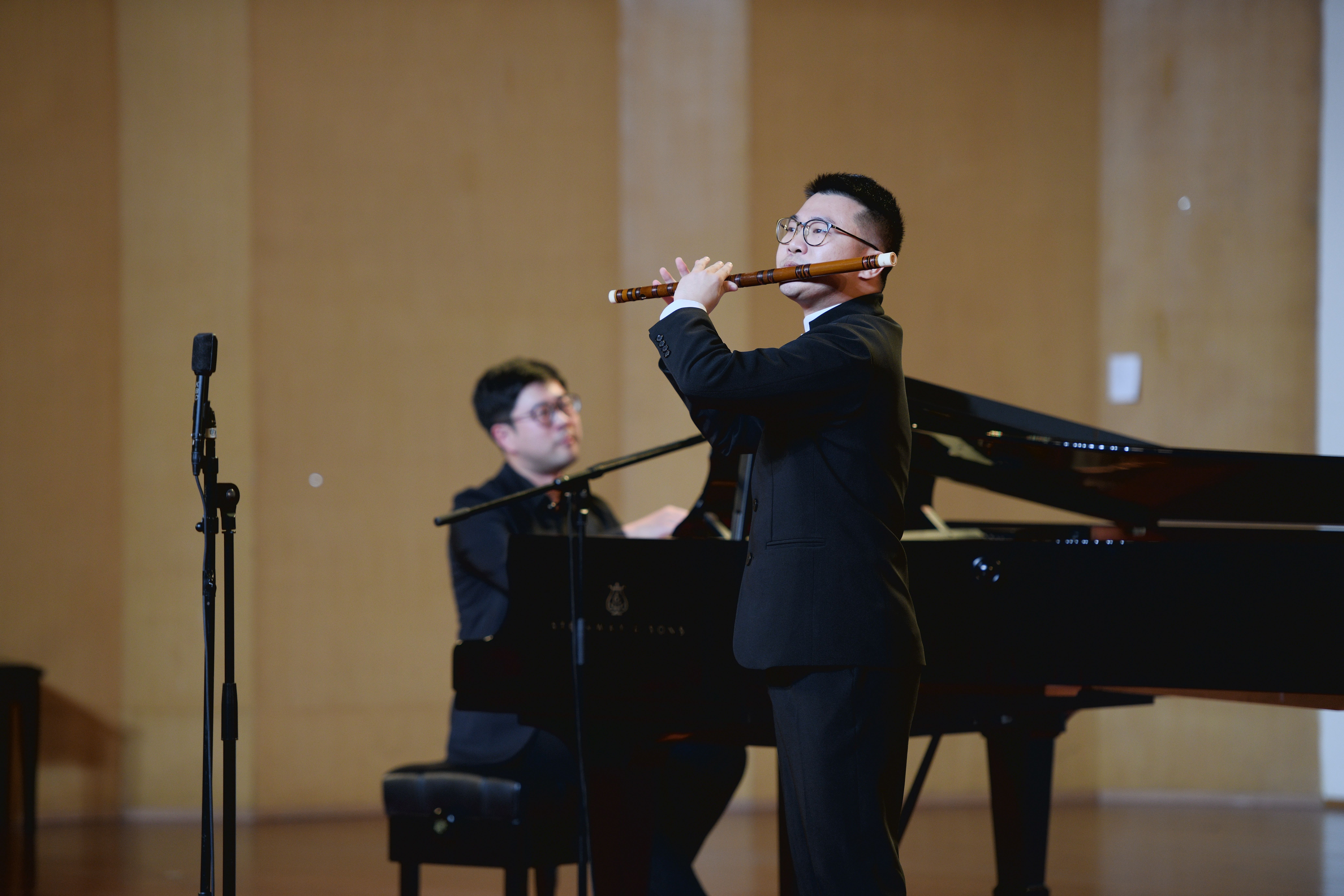 一曲激昂的秦腔秦韵仿佛将现场观众置身于八百里大漠秦川。《秦川情》由浙艺2005级校友、赵松庭笛子研究会副秘书长、浙江歌舞剧院民族乐团竹笛演奏员刘松涛带来,作品运用了大量的腹震音和揉音技巧,极富色彩,对演奏者有着相当高的要求。刘松涛从浙艺毕业后考入上海音乐学院继续深造,工作后多次随团前往欧洲多国巡演,深受业内外好评。音乐会前的访谈中,他表示多年来一直感恩于母校对他的培养。