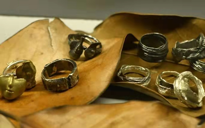 青瓷烧造小组的每一位同学在制作青瓷时脚踏实地,耐心仔细,仿照古代不同用处的瓷具烧制出茶盏、香炉、茶壶、宋砚、耳饰等多个精美的作品。水印木刻模块中,《示儿》《市集》《南宋赏玩指南》《园林四景》《岑绛》《千里江山图》《囍》等作品的严谨制作,可以看出同学们对南宋传统习俗做了深入的了解。《三链章 二链章》《十二星宫图》等石刻作品采用石雕技艺中链雕、镂空等手法,体现出同学们高超的手法以及扎实的石刻功底。