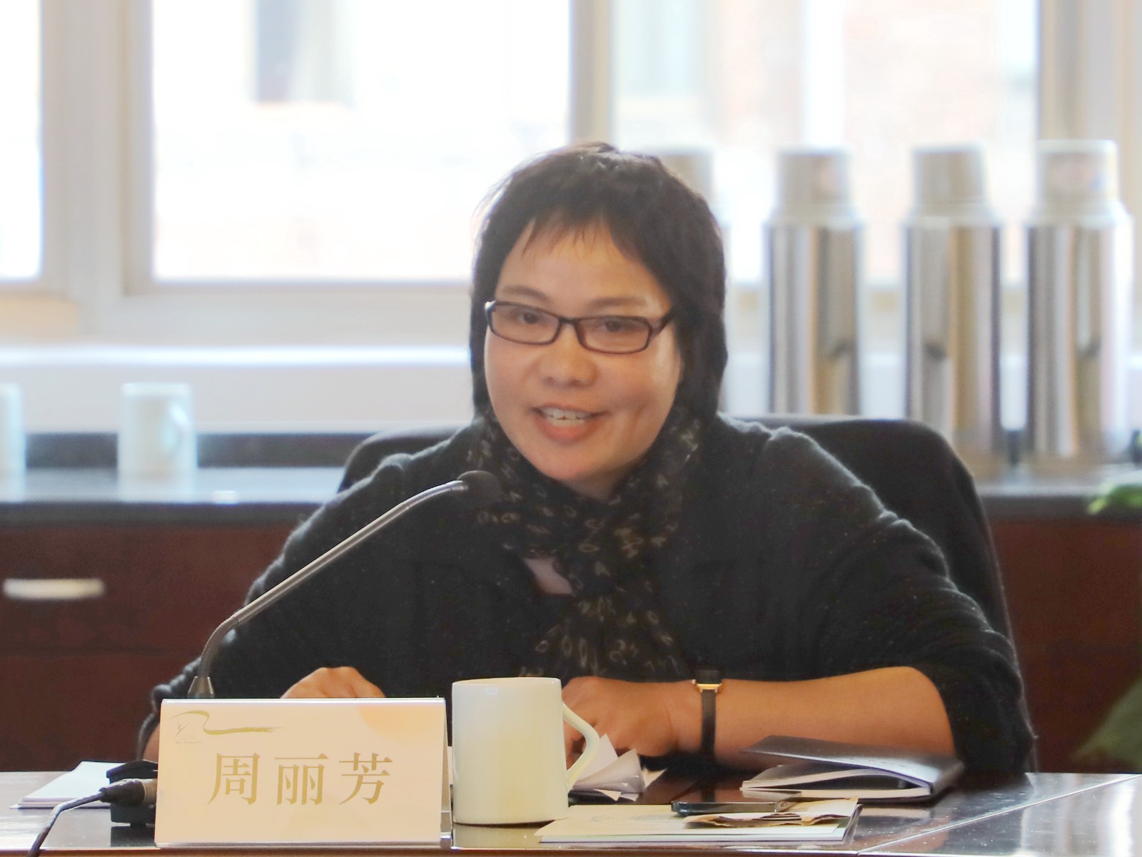 继续教育学院院长周丽芳汇报了学校培训工作、承担全国文化行业职业技能鉴定和学校申报省级社会评价组织等情况。