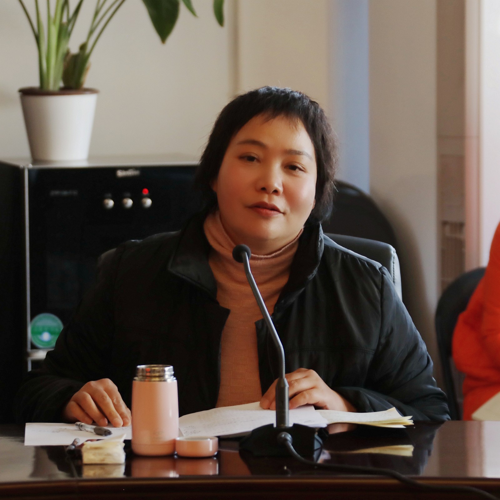 院长、党委副书记黄杭娟作题为《勇担民族复兴时代使命  扛起文艺新人培育职责》的发言,她表示,习近平总书记重要讲话深刻阐明了新时代新征程上文艺工作肩负的重大使命,为我们做好文艺人才培养工作提供了根本遵循,我们要做好三个深刻领会:一是要深刻领会新时代新征程是当代中国文艺的历史方位,主要从三个角度来理解:党的百年奋斗凝结着我国文化奋进的历史;民族复兴时代主题离不开文艺创造;展现新时代精神气象是文艺工作者义不容辞的责任。二是要深刻领会坚守人民立场是社会主义文艺的根本立场。主要体现在人民是文艺之母、文艺百花园永远为人民绽放、文艺创作的魅力来自于深入人民生活三个方面。三是要深刻领会文艺承担的成风化人的职责。因为文艺发挥着引导社会价值、引领时代精神的重要作用,同时文艺创作者的人格与作品的思想价值与社会影响息息相关,再者文艺工作者要在追求德艺双馨中成就人生价值。她认为,讲话进一步指明了学校办学方向,对我们在艺术人才培养、艺术作品创作、艺术实践服务社会等工作中具有很强的指导意义。我们要不辜负习近平总书记的希望,充分践行讲话精神,全面加强党的领导,加强对师生的思想政治引领,强化教育工作者自觉担当起为党育人、为国育才和立德树人的使命,培养学生坚持弘扬正道,追求德艺双馨,秉持校训精神,创造有浙江辨识度的代表浙艺特色的标志性成果,为浙江文化高地建设、高质量发展建设和共同富裕示范区培养更多高素质的文艺人才。