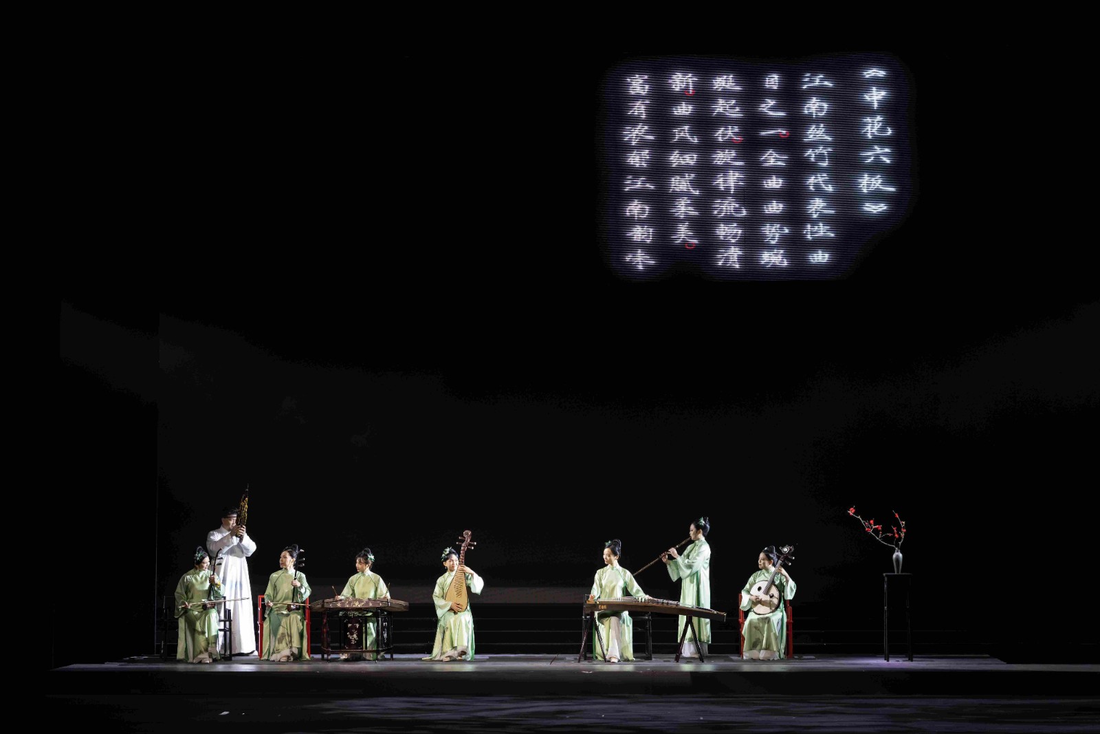 ▲江南丝竹代表性曲目《中花六板》在由浙江艺术职业学院、浙江歌舞剧院有限公司联合出品的大型民族管弦乐音画《听见江南》精彩上演
