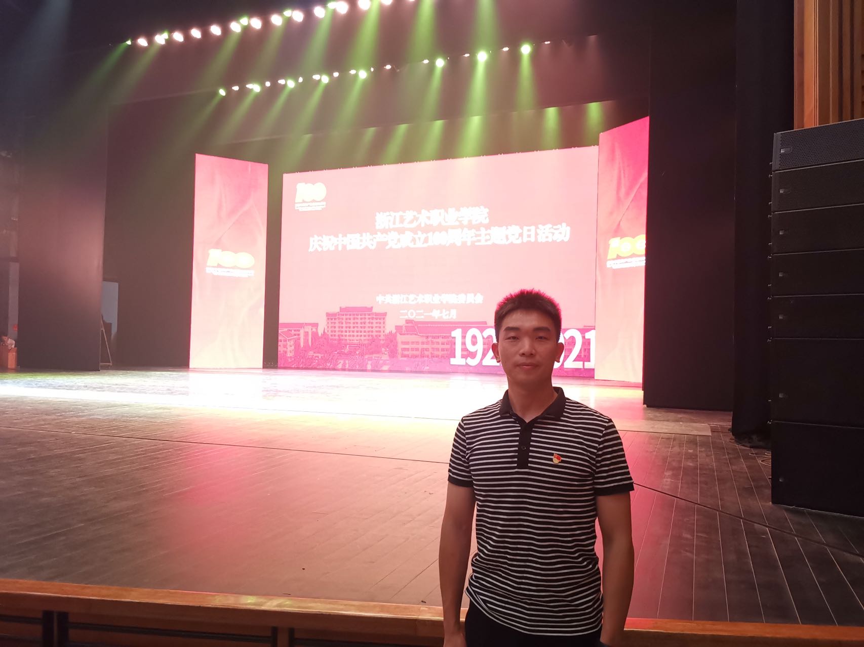 操场上洋溢着欢声笑语,学生们排着队奔跑在红白跑道上,来来往往的学生中间,有一个身影一直站在跑道边,胸前⼀闪⼀闪的是体育老师人手一个的哨⼦。这就是浙江艺术职业学院基础教学部(公共体育部)教师黄思伟,同学们口中的“小黄老师”,浙艺教师队伍中的新生代。