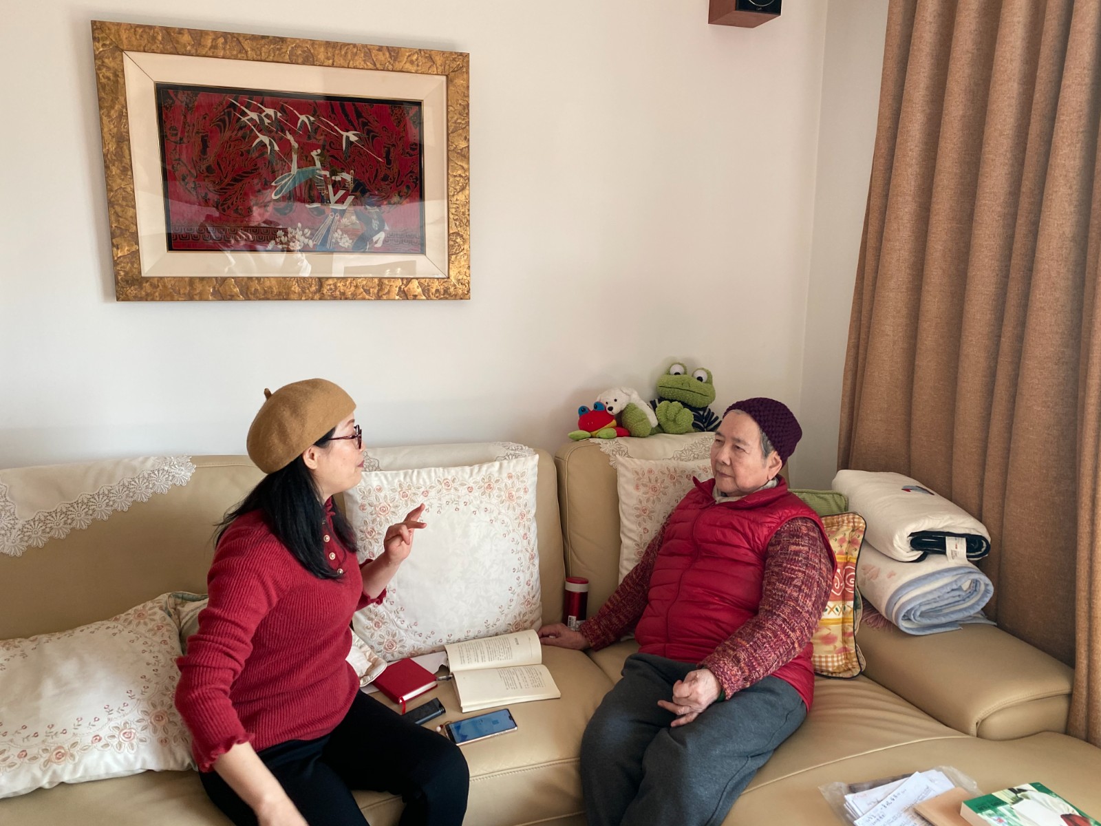 ▲向越剧表演艺术家吕瑞英请教语音问题