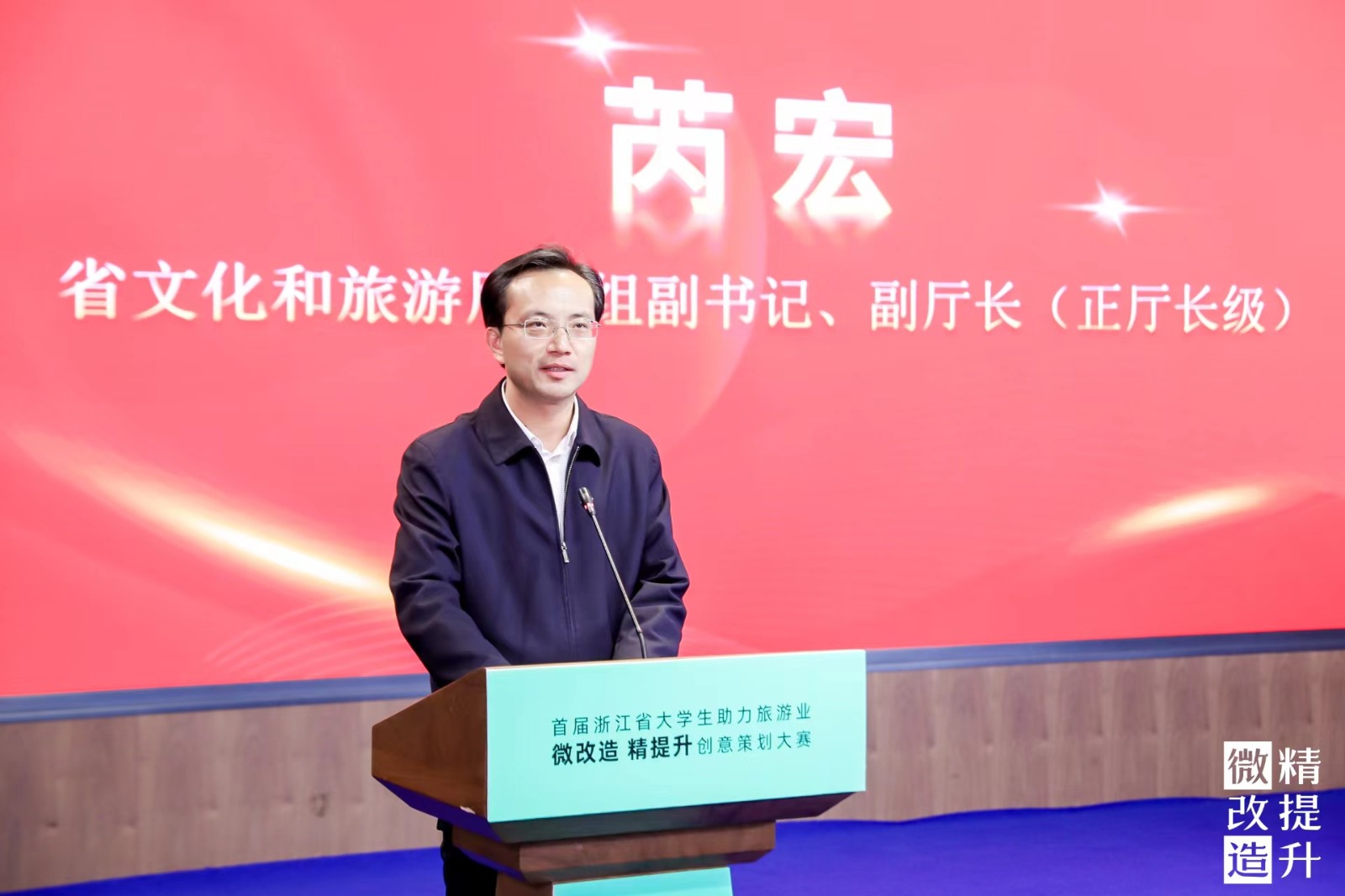 浙江省文化和旅游厅党组副书记、副厅长(正厅长级)芮宏,省文联党组成员、书记处书记曹鸿出席,浙江艺术职业学院党委书记薛亮,院长黄杭娟,浙江省文化和旅游厅、浙江省农业农村厅等相关处室负责人,浙江省电影家协会代表,全省各设区市、县(市、区)文化和旅游局相关处室负责人,大赛评委,参赛高校团队等参加典礼。