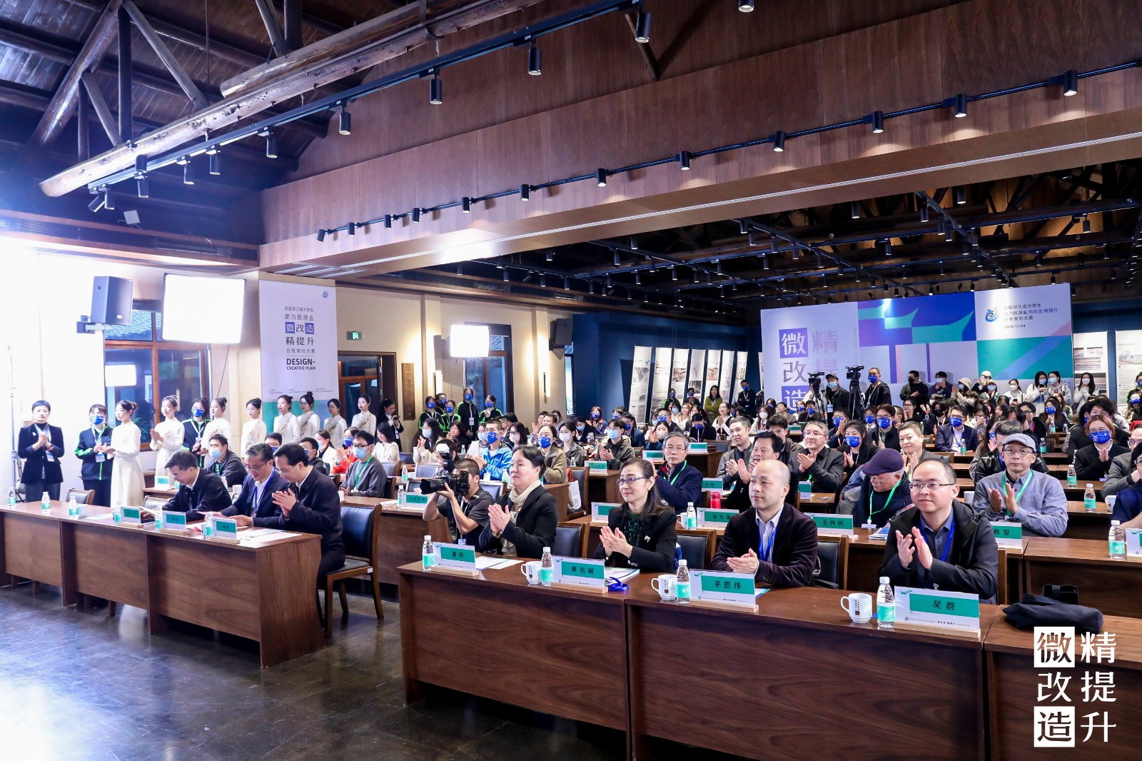 典礼后,大赛还为参赛选手精心筹备了供需项目对接会、创意沙龙和专家主题讲座。对接会上各项目需求方、行业专家、参赛选手们围绕本次新设计赛道的获奖项目进行深入了解,扩展合作空间,更好地促进优秀设计项目扎根落地;创意沙龙围绕创意赋能旅游发展、资源整合助力“微改造、精提升”等内容展开讨论;主题讲座分别邀请到了中国美术学院王炜民、安吉久宿文化旅游发展有限公司董事长方方作《“微改造、精提升”实践与思考》《乡村实践案例分享》的讲座,营造学术创新氛围,激发学生创新热情。