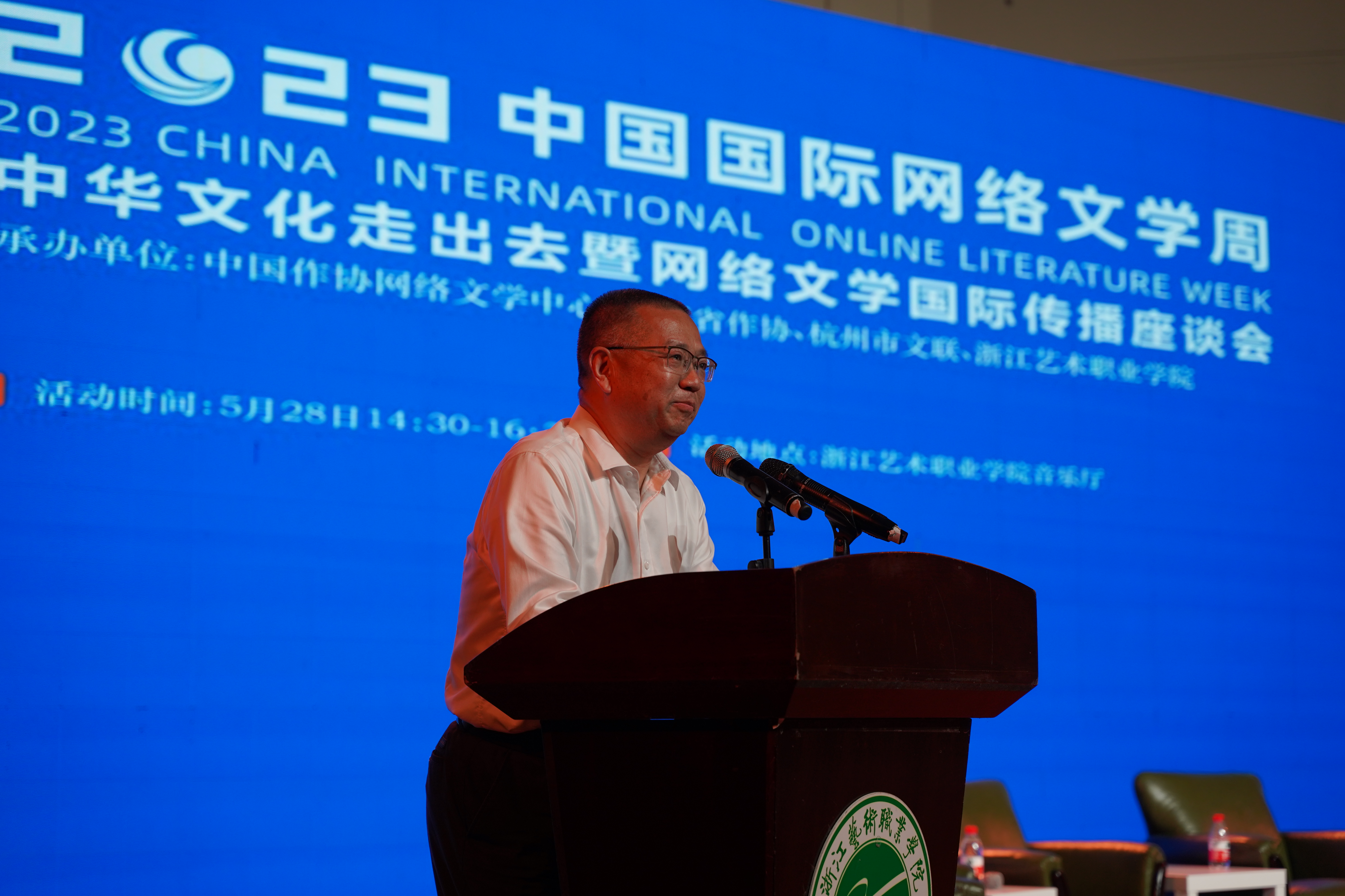 5月28日下午,由中国作家协会、浙江省人民政府、杭州市人民政府共同主办,中国作协网络文学中心、浙江省作协、杭州市文联、浙江艺术职业学院承办的2023“中国国际网络文学周”中华文化走出去暨网络文学国际传播座谈会,在浙江艺术职业学院音乐厅举行。