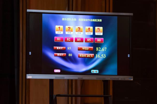 本赛项参赛形式设定为团体赛:每支参赛团队选手需完成独唱、器乐团队合奏(钢琴组、民族乐器组2选1)、艺术素养测试三项内容,按照三项比赛内容计团队总分。本次比赛特邀省内外17位专家担任各赛项环节的评委工作,采用现场亮分方式为选手打分,仲裁监督组全程监督,确保比赛各个环节公正有序进行。