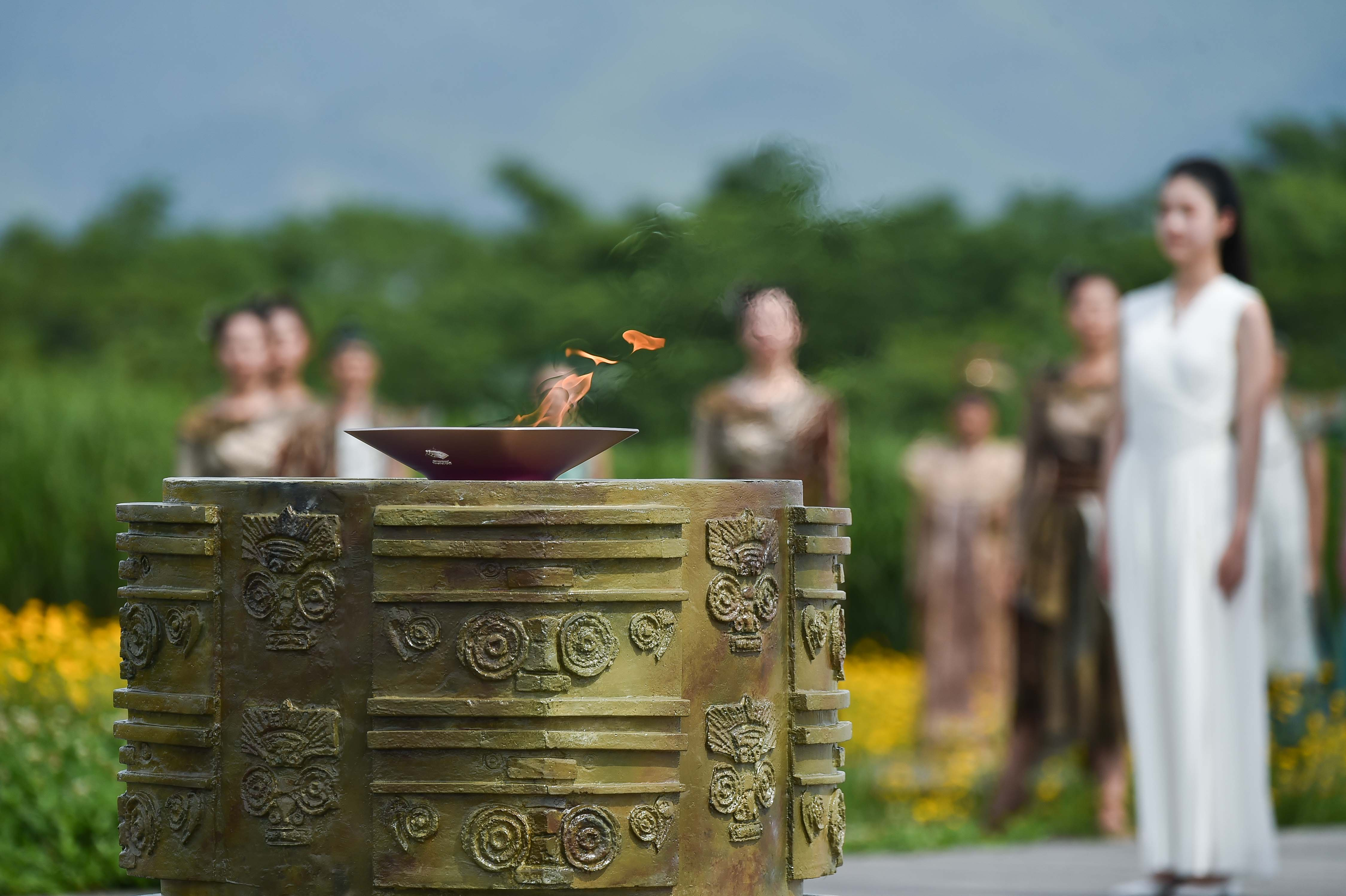 6月15日上午,杭州亚运会火种在杭州良渚古城遗址公园大莫角山成功采集。