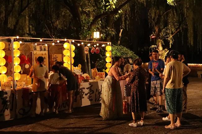夜幕降临,华灯初上,随着集市的一盏盏灯亮起,更多的游客朋友们来到了活动现场。晚风轻拂、繁华夜灯,满满人间烟火气。