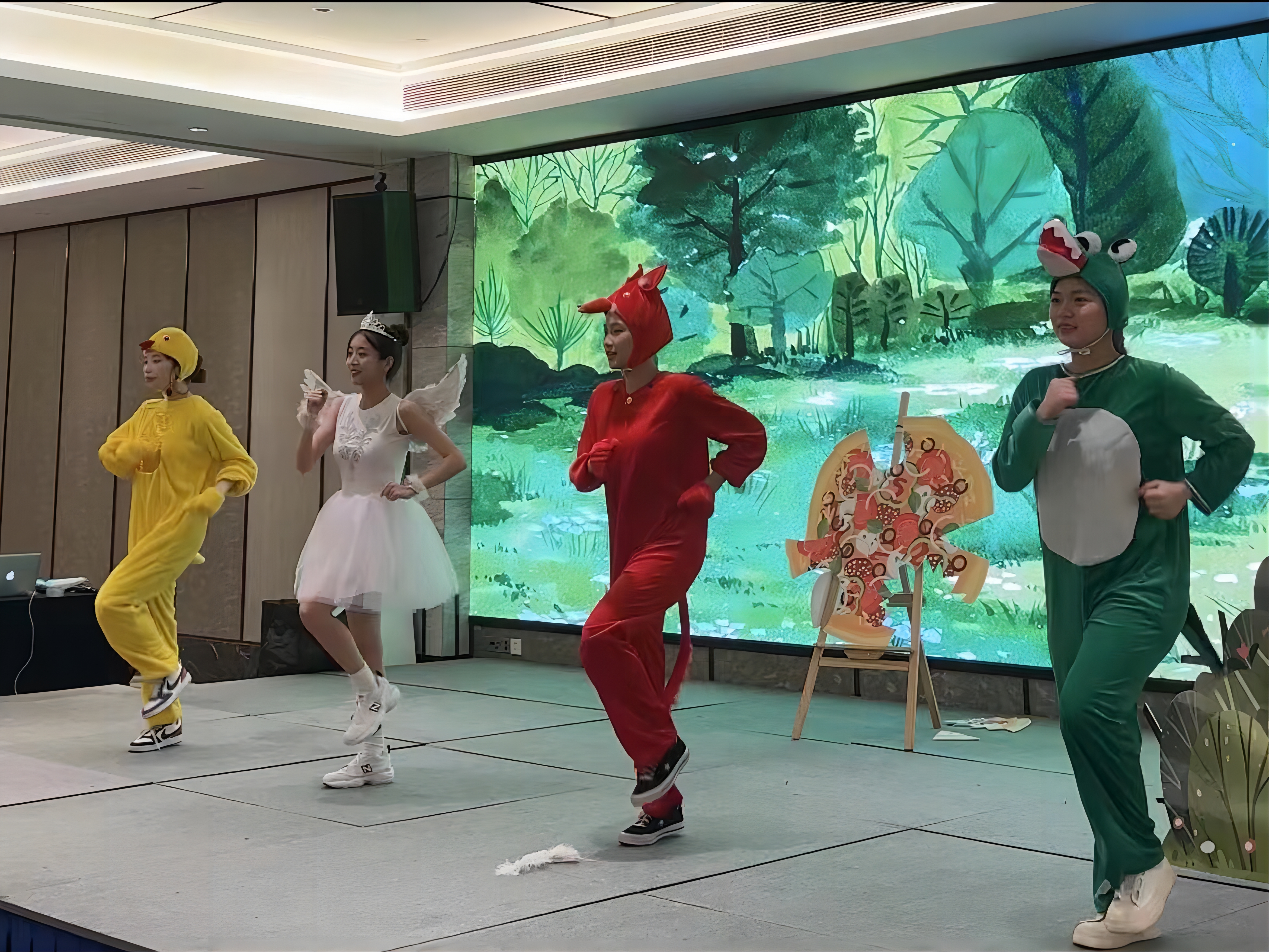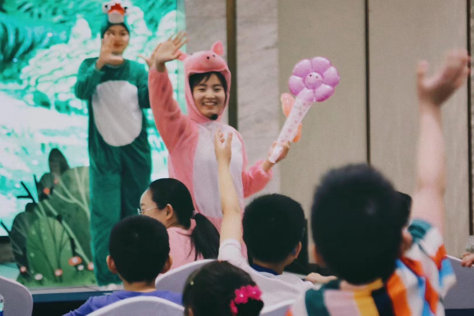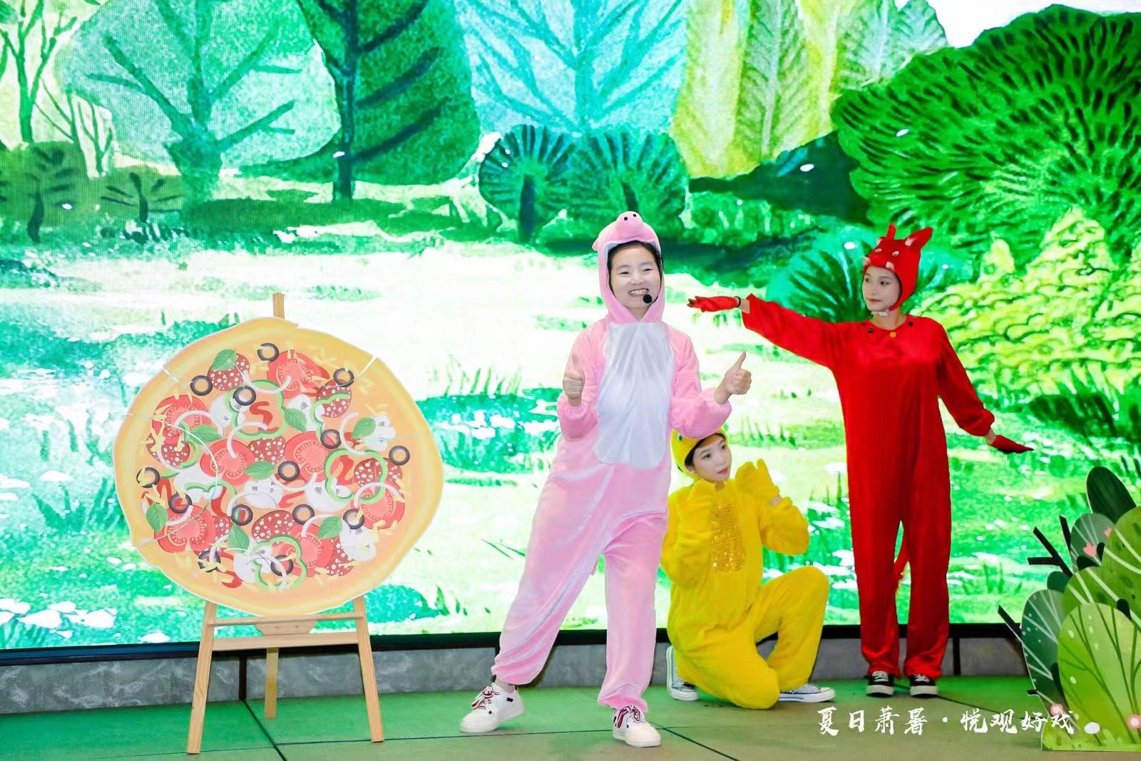 “小猪做了一块很大的饼,然后累得睡着了。睡醒后,发现有人偷吃了一口它做的大饼,小朋友们,小猪能找到吃它大饼的人吗?”浙江艺术职业学院演艺与教育学院学前教育专业学生正在绘声绘色地演绎儿童剧《谁吃了我的大饼》。这是发生在杭州开元名都大酒店内的一幕。