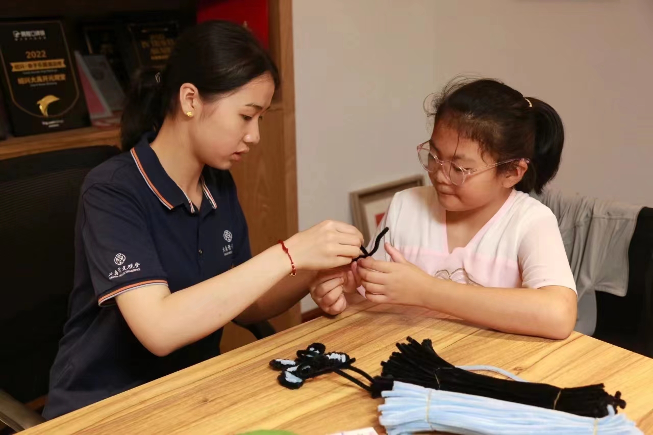 常驻文化体验官项目由2021级公共文化班的三名学生赴绍兴大禹开元观堂开展实践,他们结合酒店深厚的文化底蕴,分别在文化活动策划、文化体验活动组织开展、儿童研学活动组织开展和员工培训等岗位进行实践。担任文化体验官的胡嫣负责手作阁的日常运营、活动策划和执行,其中书签制作、扇面绘制等项目受到游客喜爱。担任品牌干事的莫李雯负责文化活动脚本设计、台词撰写和现场执行等。担任人力资源干事的俞佳怡负责大禹开元观堂HR公众号宣传,员工子女“小禹宙”暑假班课程并协助员工培训。