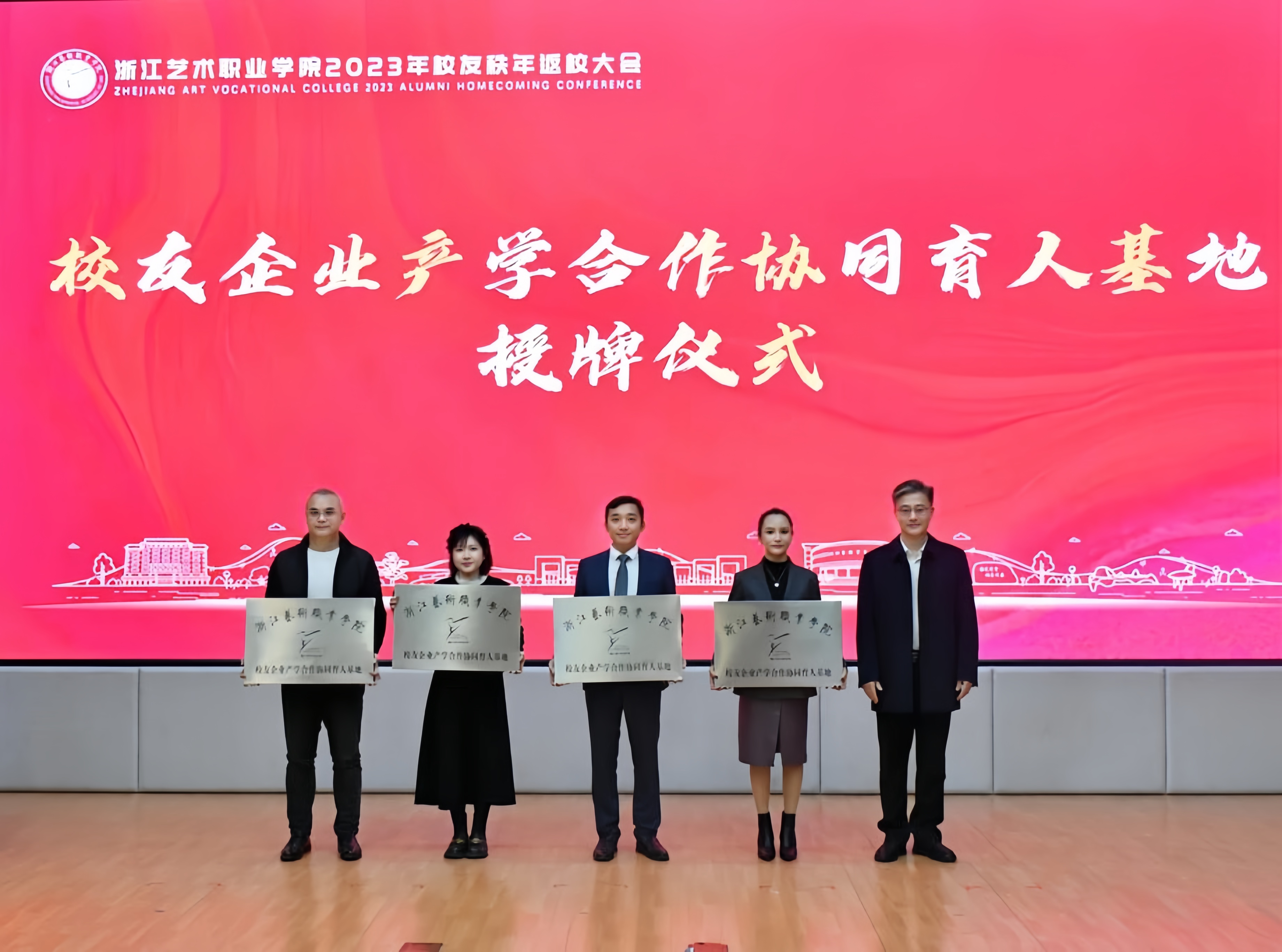 浙江艺术职业学院2023年校友秩年返校大会在学校图信报告厅举行。校党委书记薛亮,党委委员、副院长沈军甫出席大会。大会由校党委副书记夏开堂主持。
