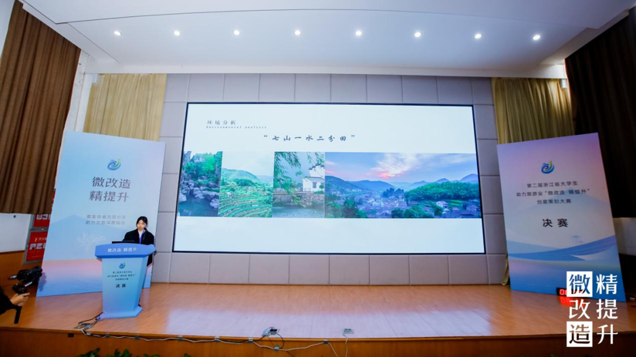 作为浙江省大学生助力旅游业“微改造 精提升”创意设计大赛的承办单位,我校探索以赛事办实事,以项目任务驱动教学,使教学和社会需求进一步接轨,提升办学质量,共同推动旅游业高质量发展,奏响美美与共的乡村乐曲,绘就共同富裕的美好画卷。