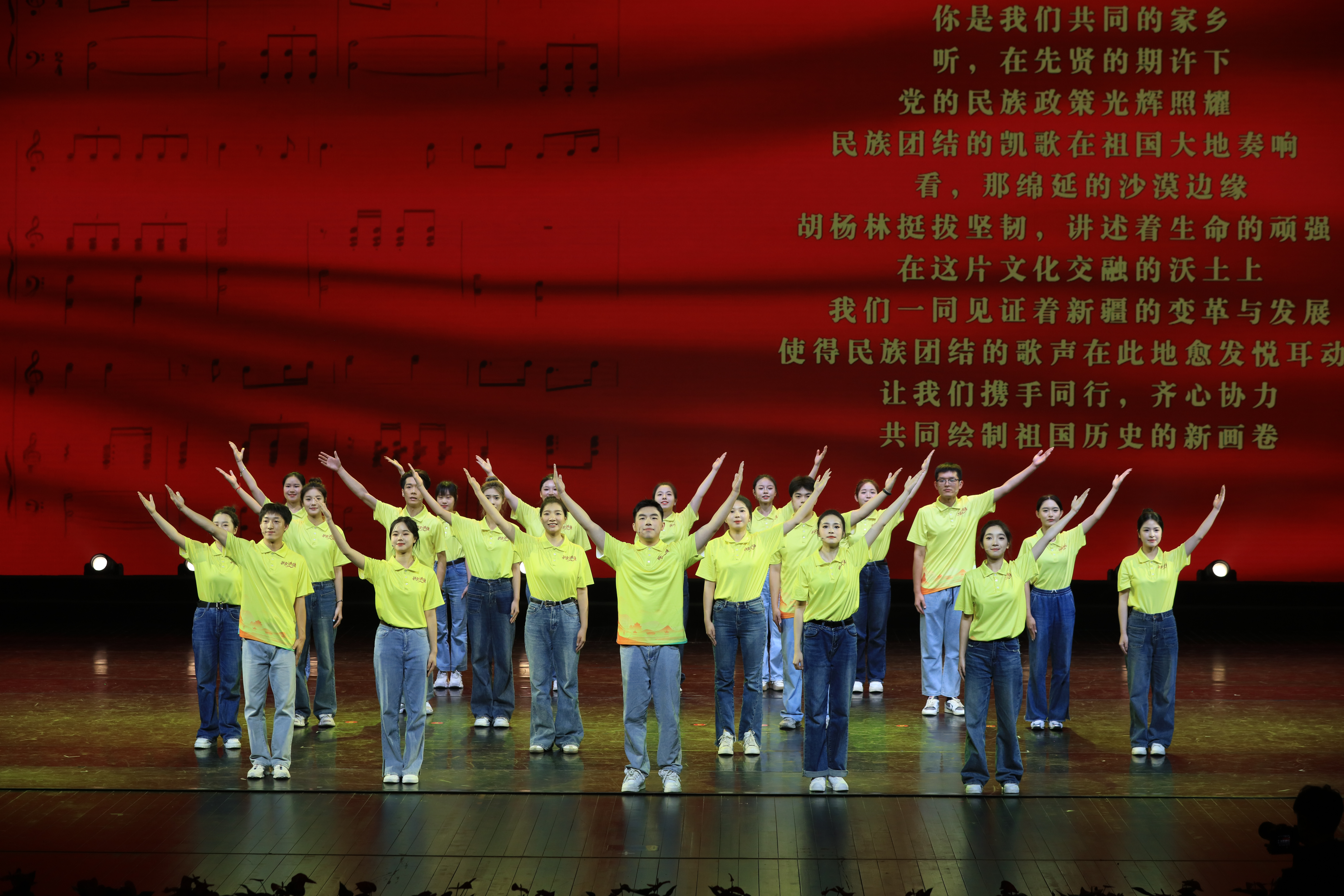 仪式结束后,现场观众还欣赏了浙江艺术职业学院乡镇文化员专业教学成果展示及阿克苏特色文艺节目的精彩演出。其中包括合唱《梦想开始的地方》、宣讲《以文化人》、戏曲串唱《戏韵风华》、音舞诗画《舞韵丹青》、相声《学说国通语》、热瓦普独奏《共谱新篇》等。