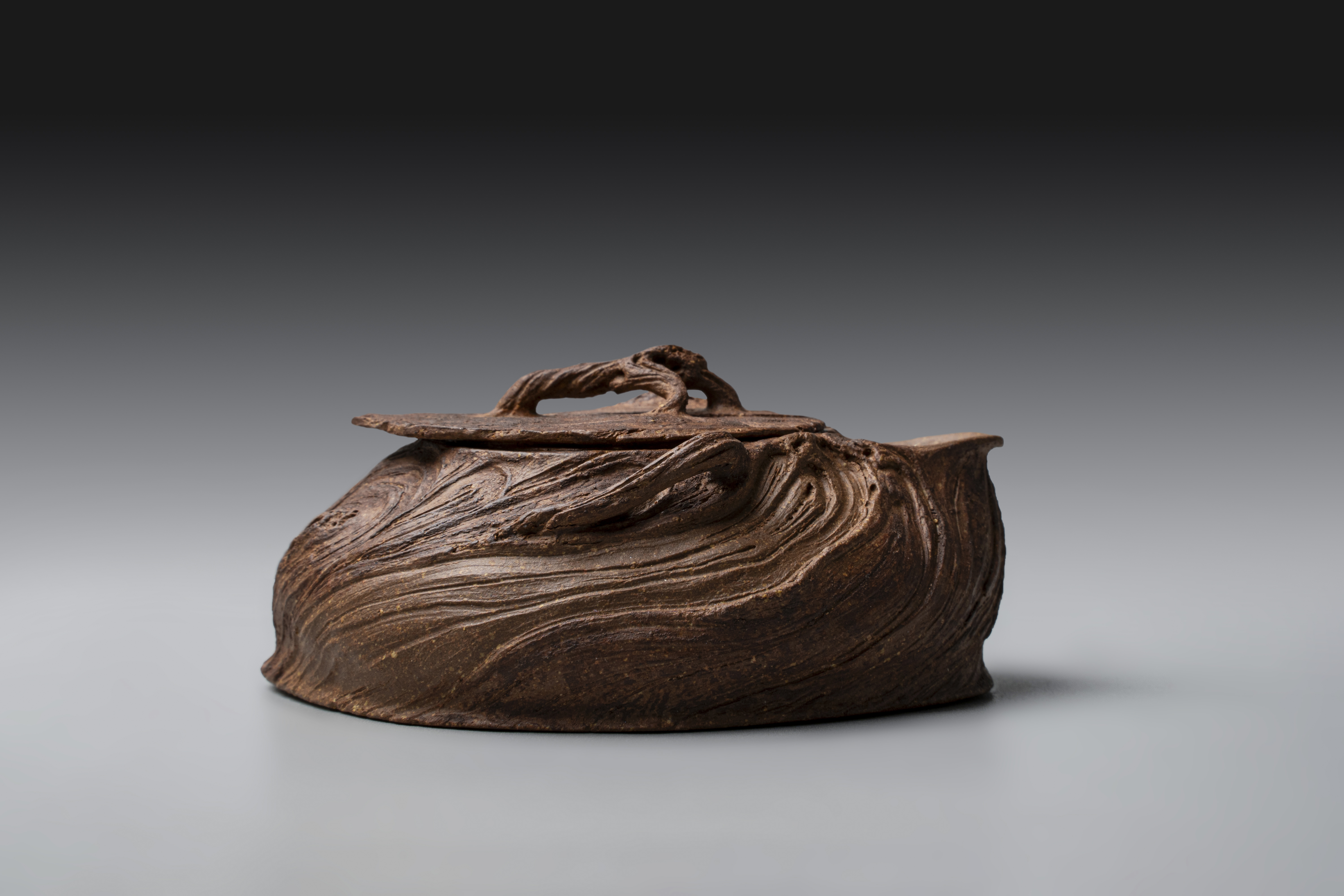 创作理念:这把宝瓶的创作最开始是因为一款新的泥料的烧成。出来的效果一下就让我联想到了以前外婆家门口的一棵古树。确定好主题后,在细节上,添加了很多长的线条。我认为长线条是有流动的,有力量的,就好像虽为枯木也可逢春。在技法上运用了手捏,拍泥片还有粉引。手捏的技法会让整个壶型状态更加质朴和放松。传统的紫砂壶拍泥片则能让其在实用性功能性上有好的把控。
