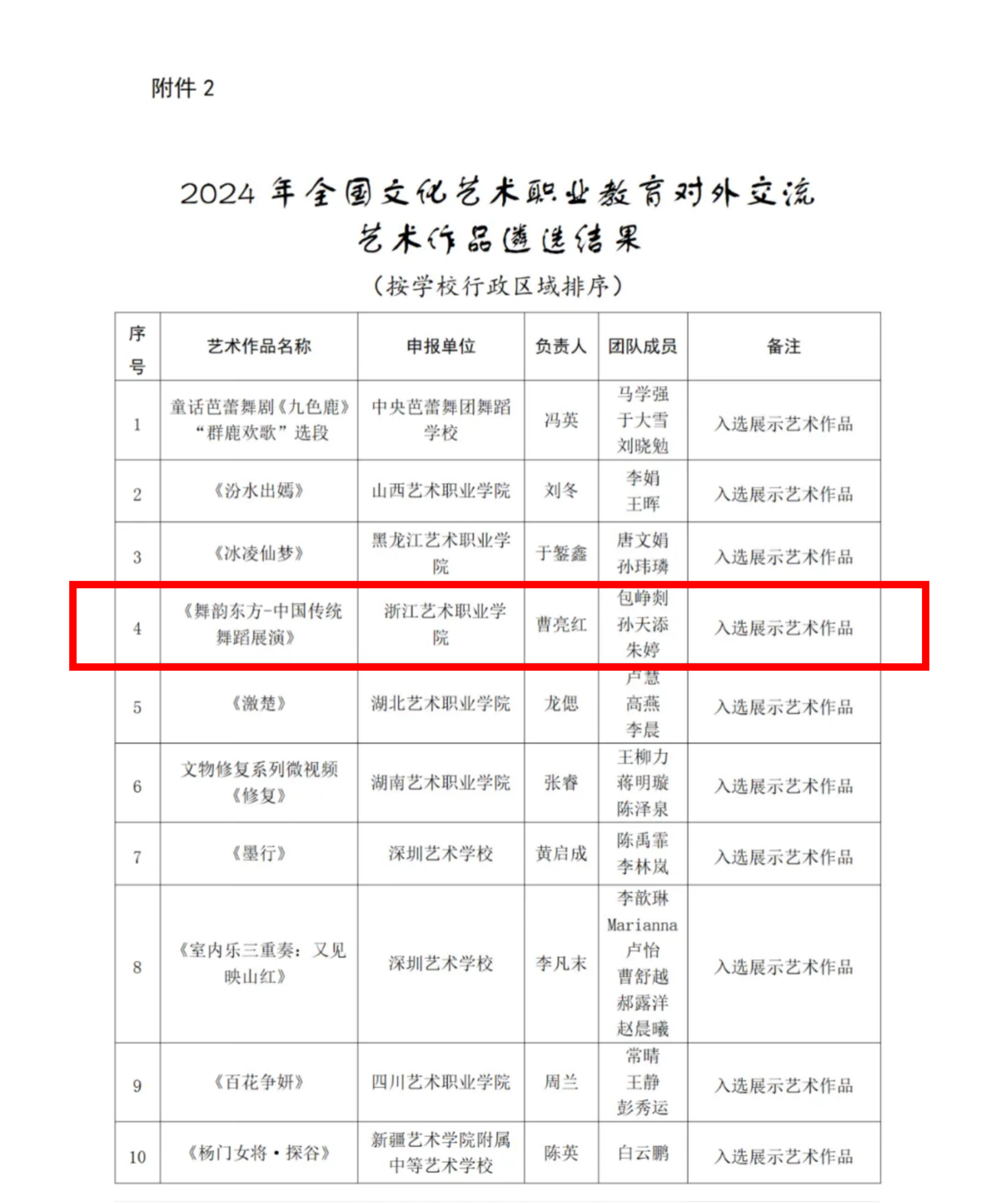近日,由文化和旅游部科技教育司指导、全国文化艺术教育教学指导委员会主办的2024年全国文化艺术职业教育对外交流项目的线上推广活动遴选工作结束。浙江艺术职业学院舞蹈学院申报的原创舞蹈作品集《舞韵东方-中国传统舞蹈展演》脱颖而出,成功入选为展示艺术作品。