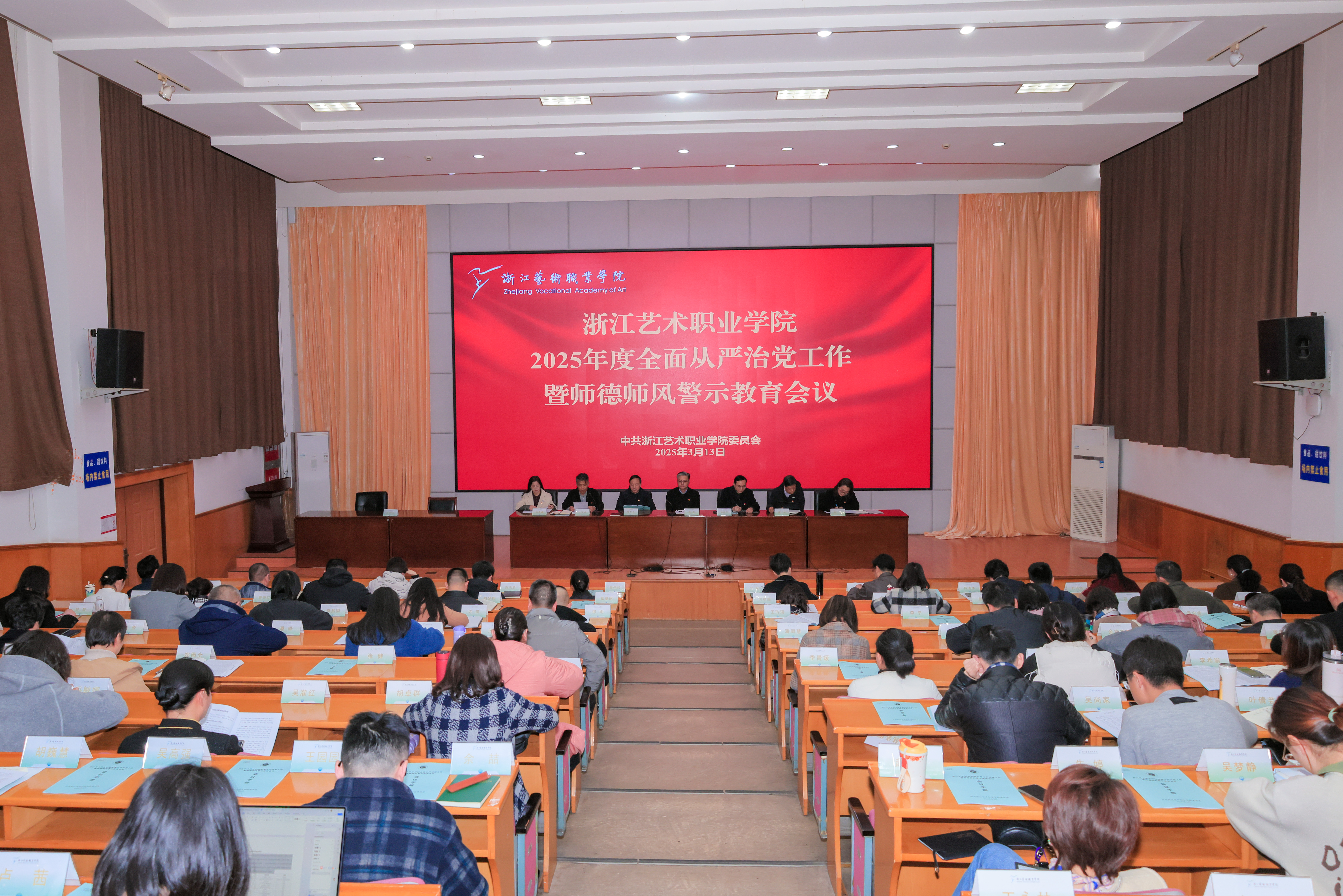 3月13日,浙江艺术职业学院召开2025年全面从严治党工作暨师德师风警示教育会议,贯彻落实习近平总书记在二十届中央纪委四次全会上的重要讲话和全会精神,总结2024年学校全面从严治党工作,分析研判形势,部署2025年全面从严治党工作重点任务,为学校教育事业高质量发展提供坚强政治保障。