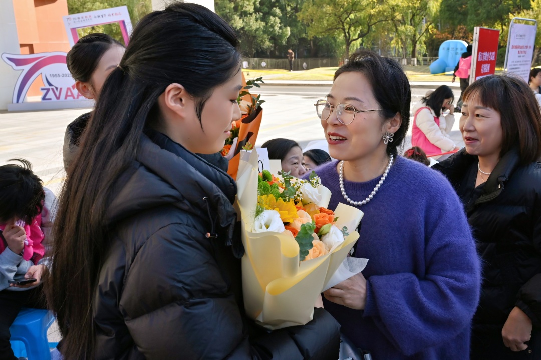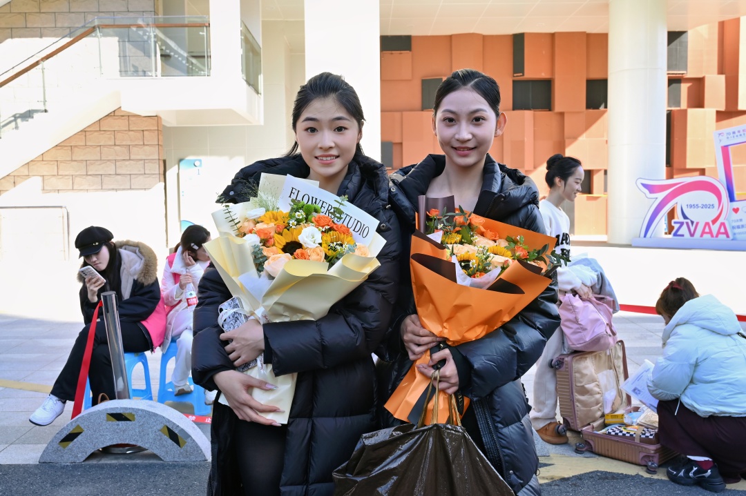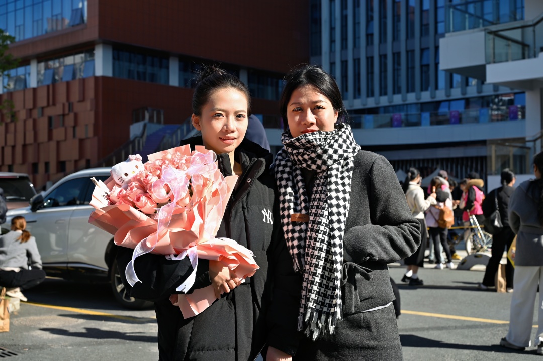 考点外,家长们的叮嘱和鼓励温暖了冬日的凉意。手捧鲜花的母亲,在考场外静静等候。“好好考,顺其自然,加油!” 简单的话语,寄托了她对孩子最美好的期盼。