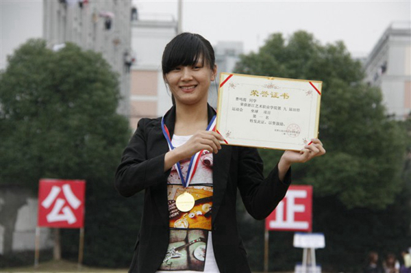 “一分耕耘一分收获。”通过刻苦学习,兢兢业业地工作,她得到了老师和同学的一致好评。运动会上,她获得第九届校运会垒球破纪录奖;学习上,她获得浙江艺术职业学院国家励志奖学金、一等奖学金、二等奖学金、三好学生、滨江六校反邪教知识竞赛团体风采奖、浙江艺术职业学院英语周单词竞赛三等奖。她还在思想上不断提升自己,积极向党组织靠拢。从大一第一学期,郑重地递交入党申请书开始,她便用党员的标准严格要求自己,通过党校学习、组织考察, 她终于得到了党组织的认可,今年的12月,光荣成为一名中国共产党员。在大学的校园生活中,她用自己惊人的毅力不断挑战自我、超越自我、完善自我,用辛勤的汗水谱写辉煌的未来。