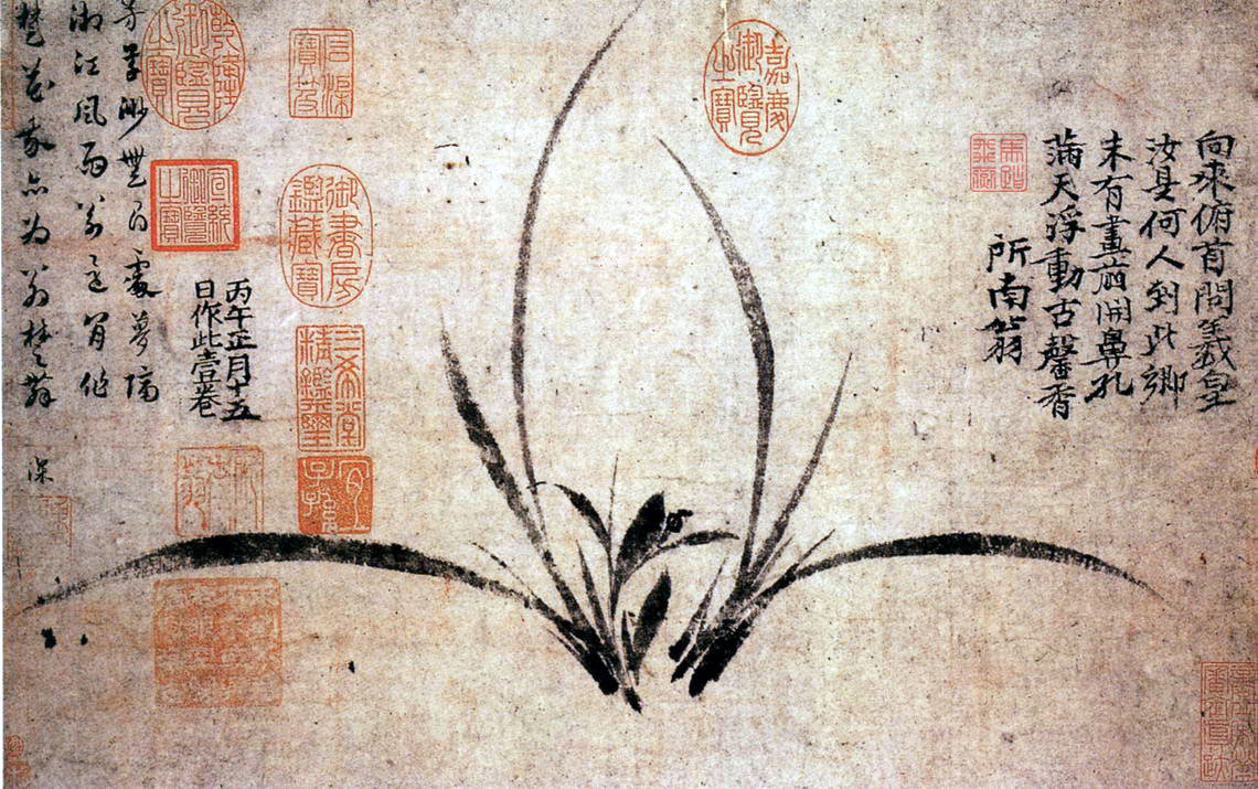 国画欣赏第一个标准要讲意境,格调是否高雅。我在日本参观大阪市立美术馆,预约观摩他们的馆藏画作,看了十几幅图,看到南宋郑思肖的《兰草图》时,一个朋友说,这幅画没有画完。我对他说这幅画有一个好处就是没有画完。这是中国美术史上非常有名的画。郑思肖是南宋人,一直生活在杭州,一生擅长画兰,南宋灭亡后,他笔下的兰花就无根无土了。别人问他,他说:“土地都被外人夺去了啊!”所以,他是在借画抒发自己的爱国情感。不了解内情的人看了,是会觉得这幅画好像没画完,但其实蕴含着很高的意境。