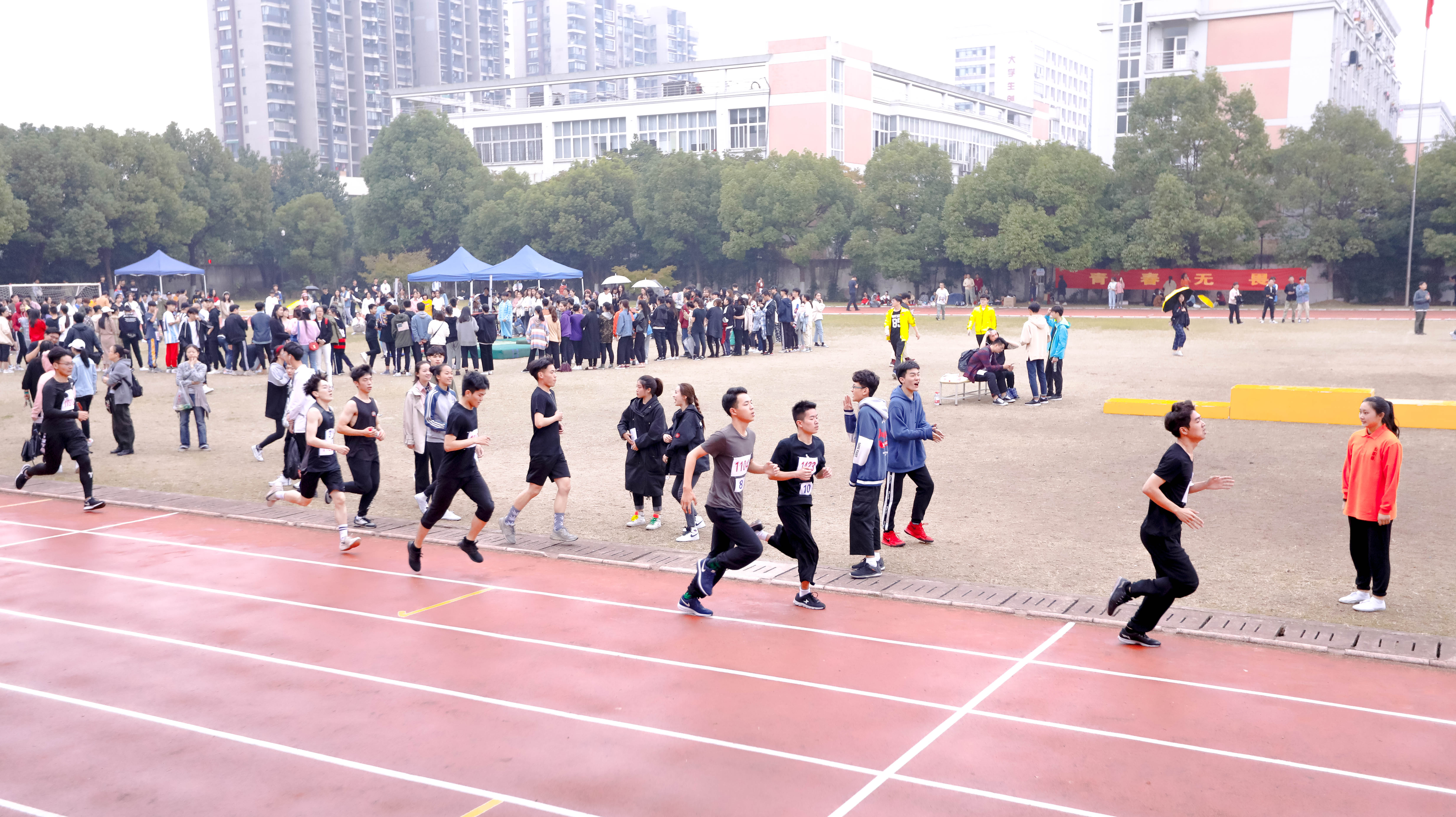 25日下午,小雨开始淅淅沥沥地下,跑道逐渐变得湿润,这给竞技带来一定难度,但是运动员们的热情却丝毫不减。