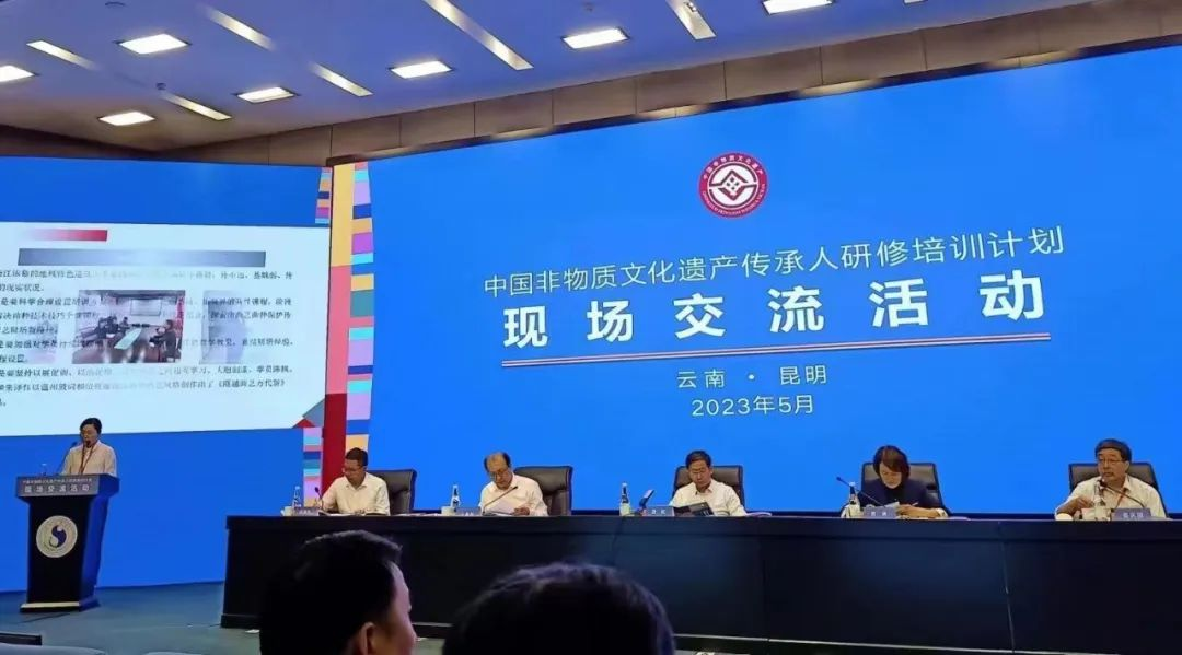 ▲2023年中国非物质文化传承人研修培训计划现场交流活动大会作为三个典型院校之一交流发言